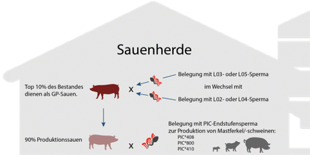 - Belegung der selektierten Großelternsauen mit PIC-L02-Sperma oder PIC-L03-Sperma