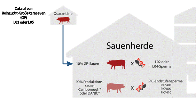 - Kernherde aus L03 (Landrasse) bei der Camborough® als Produktionssau