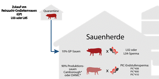 Produktion von Hybridjungsauen, die wiederum der Remontierung der Produktionsherde dienen